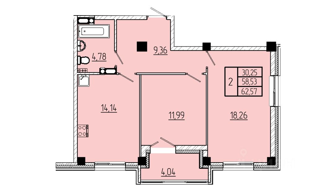 | Площадь общая | 62.6 м² |