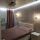 -в спальне современная кровать и стильный светильник над ней.