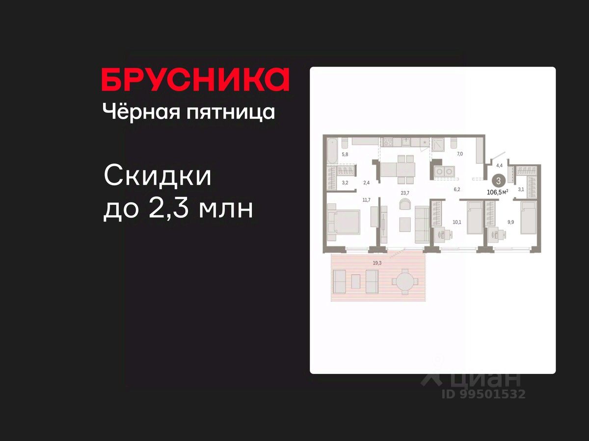 Трехкомнатная квартира от застройщика с предчистовой отделкой в Кварталы Драверта на 1 этаже. Общая площадь: 106.54 кв.м., жилая: 31.7 кв.м., площадь просторной кухни-гостиной: 23.7 кв.м. Комнаты изолированные, все окна выходят на одну сторону. В квартире один балкон, два совмещенных санузла. Наличие террасы в квартире дает возможность для создания зон отдыха в кругу семьи и друзей. Высота потолков 2.7 м.