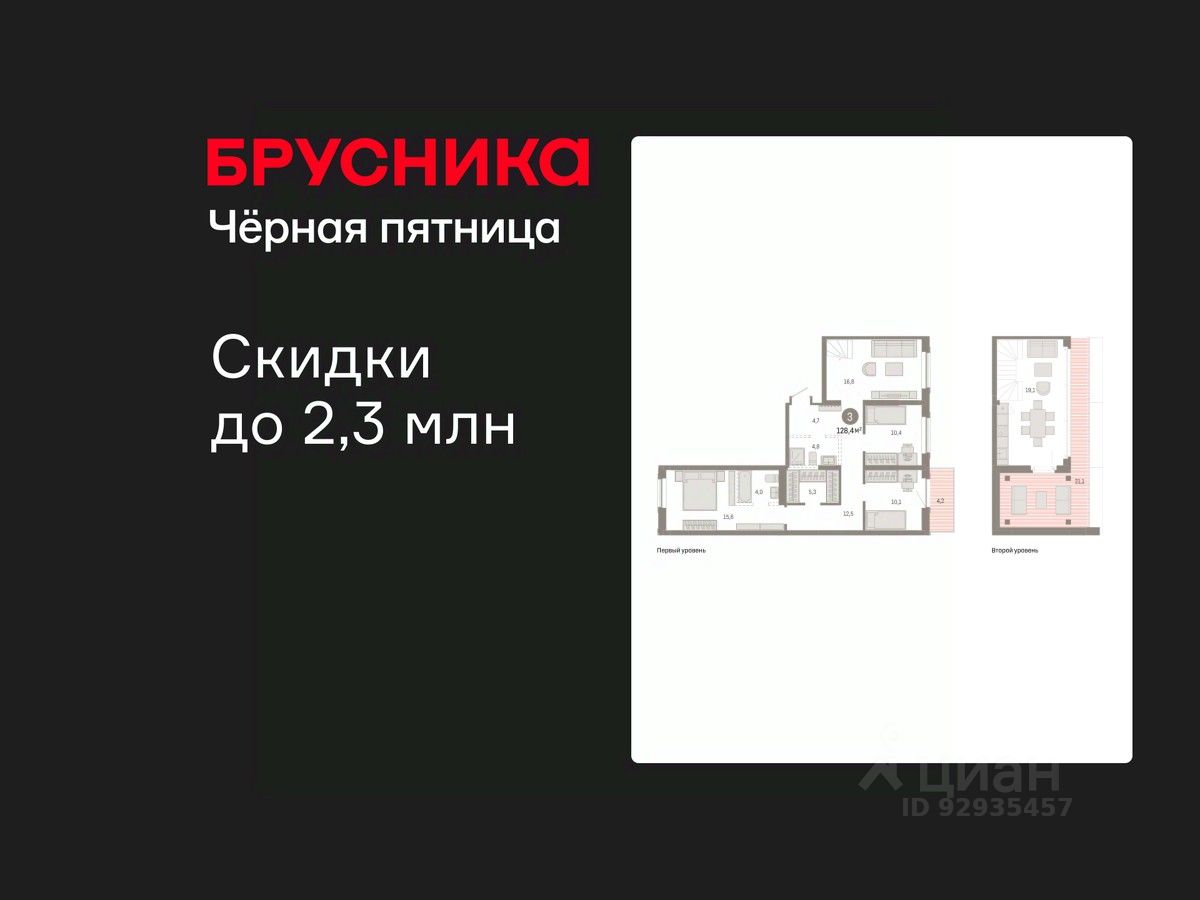 Двухуровневая квартира с кухней-гостиной и тремя спальнями в Кварталах Драверта. Особенности планировки: гардеробная, двухуровневая, вид во двор, разнесённые спальни, предчистовая отделка, мастер-спальня, балкон, терраса на крыше.
