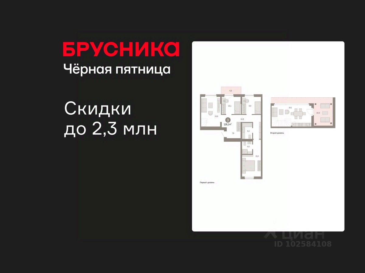 Двухуровневая квартира с кухней-гостиной и тремя спальнями в Кварталах Драверта. Особенности планировки: двухуровневая, вид во двор, разнесённые спальни, предчистовая отделка, мастер-спальня, балкон, терраса на крыше.