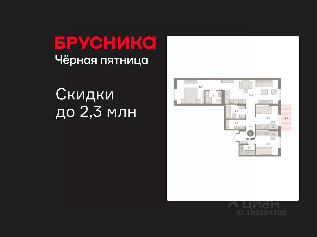 Продается трехкомнатная квартира с предчистовой отделкой в Кварталы Драверта на 5 этаже. Общая площадь: 84.38 кв.м. Высота потолков 2.7 м.