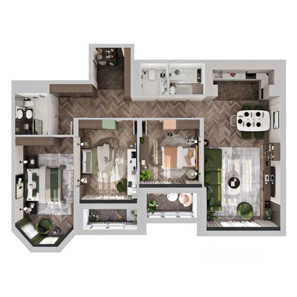 Продаётся 3-комнатная квартира в строящемся доме (Дом 1), срок сдачи: I-кв. 2027, общей площадью 107.26 кв.м., на 5 этаже.