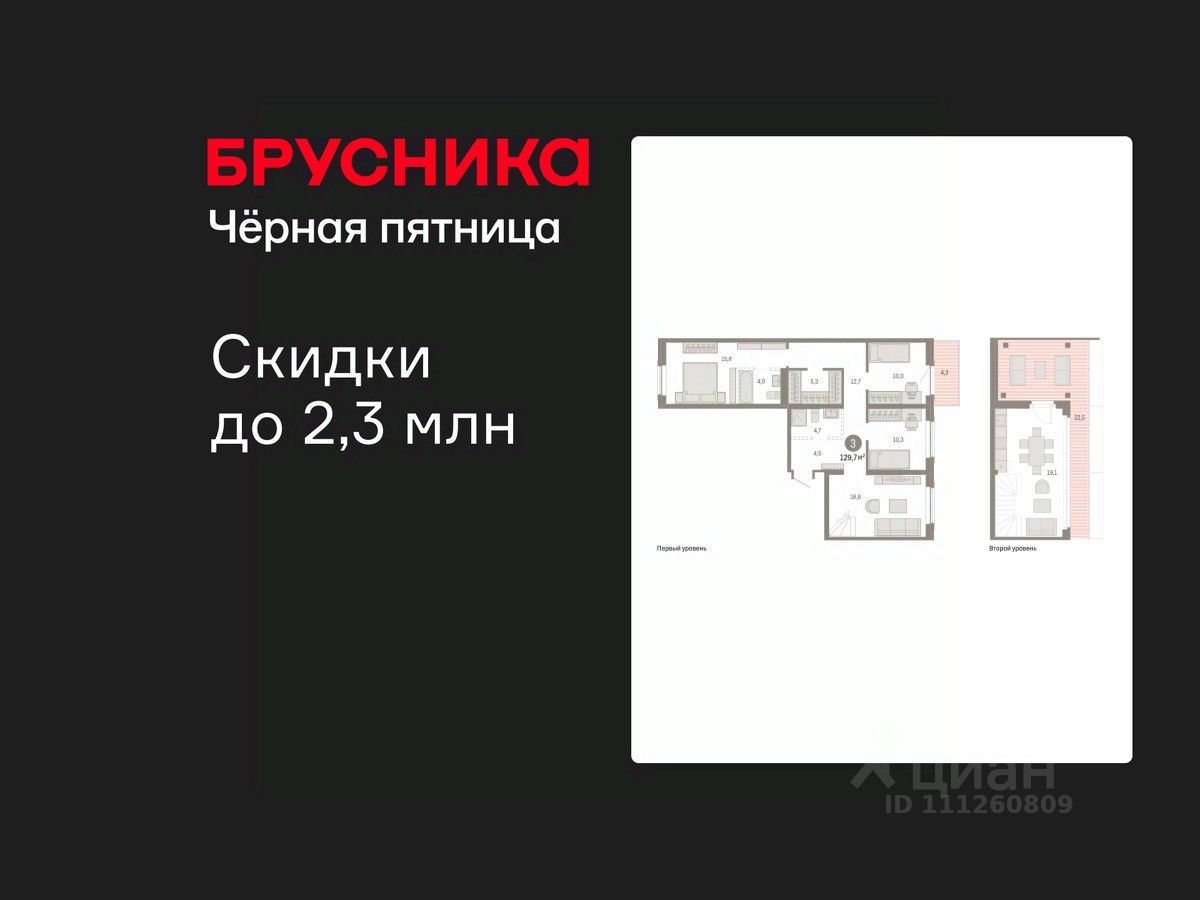 Двухуровневая квартира с кухней-гостиной и тремя спальнями в Кварталах Драверта. Особенности планировки: гардеробная, двухуровневая, вид во двор, разнесённые спальни, предчистовая отделка, мастер-спальня, балкон, терраса на крыше.