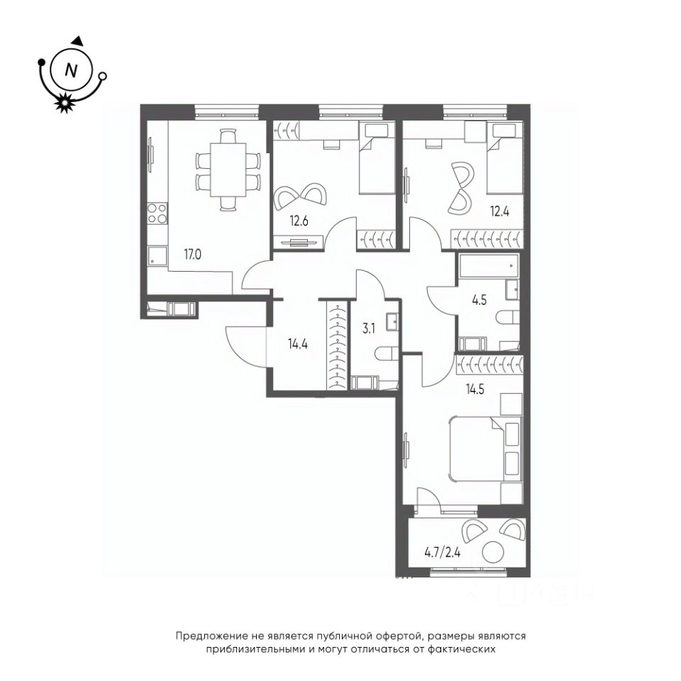 | Площадь кухни | 17 м² |
