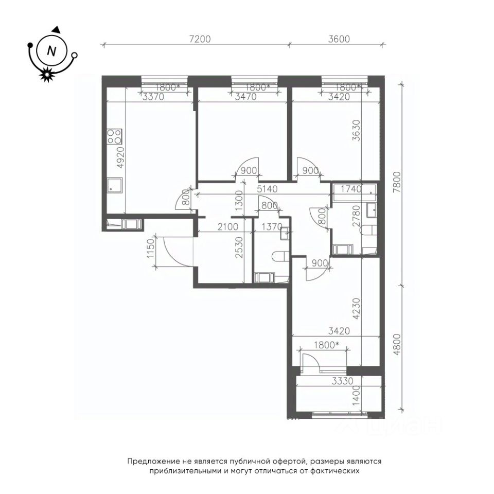Продается 3-к квартира без отделки в ЖК ''Зеленая Река''.