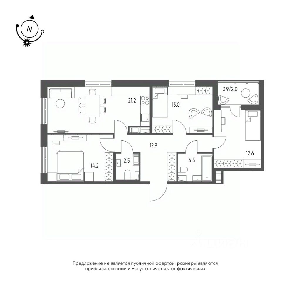 | Площадь кухни | 21.2 м² |