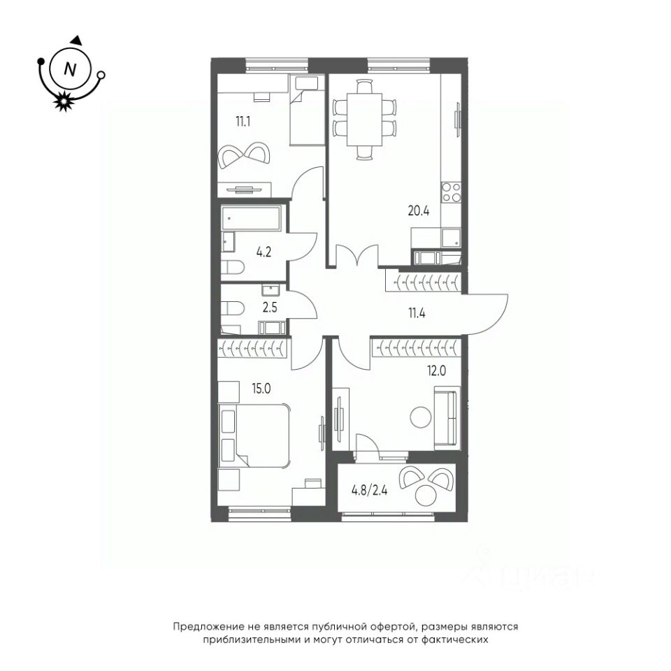 | Площадь кухни | 20.4 м² |