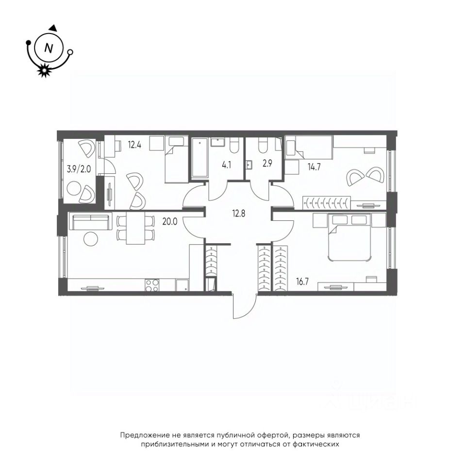 Общая площадь квартиры — 85.6 кв. м, этаж 2 из 9.