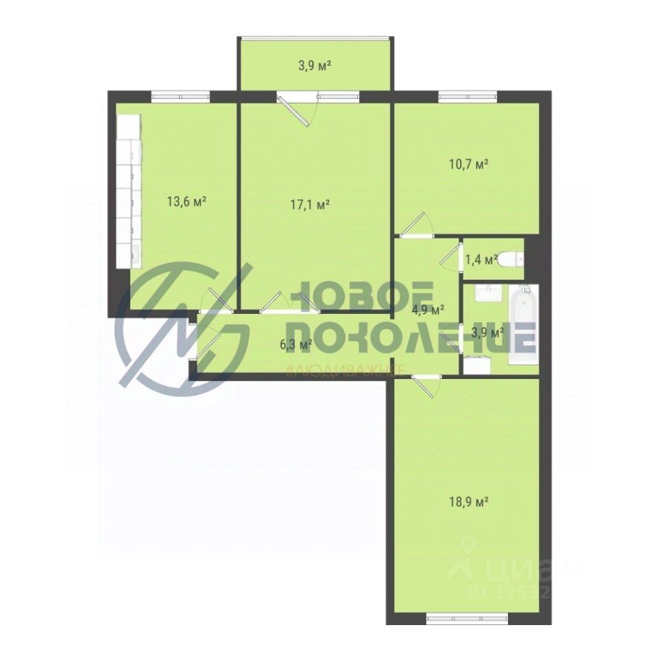 Компания недвижимости ''НОВОЕ ПОКОЛЕНИЕ'' предлагает к продаже трехкомнатную квартиру в сданном доме.