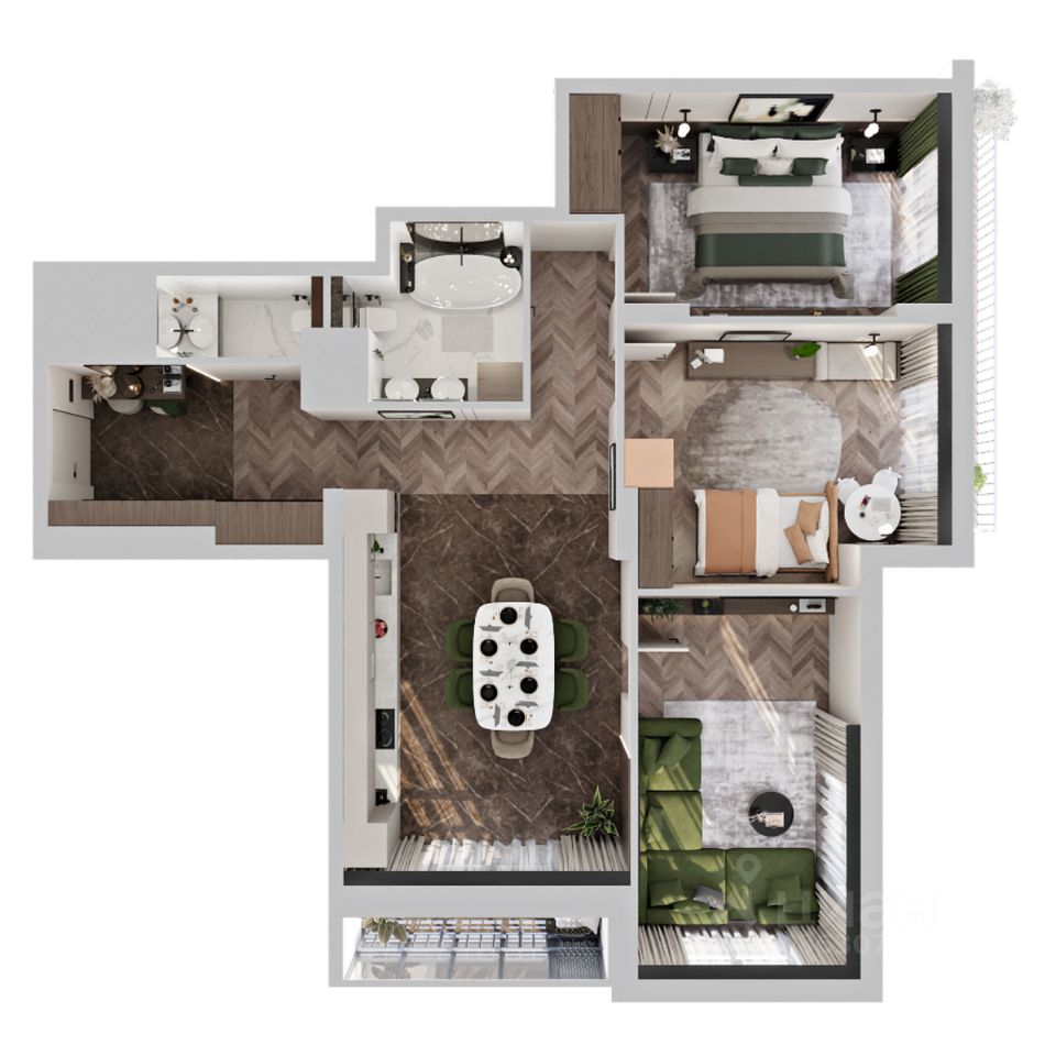 Продаётся 3-комнатная квартира в строящемся доме (Дом 1), срок сдачи: I-кв. 2027, общей площадью 93.03 кв.м., на 4 этаже.