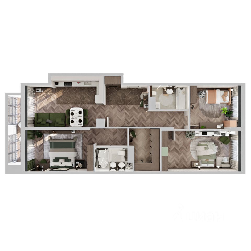 Продаётся 3-комнатная квартира в строящемся доме (Дом 1), срок сдачи: I-кв. 2027, общей площадью 101.85 кв.м., на 11 этаже.
