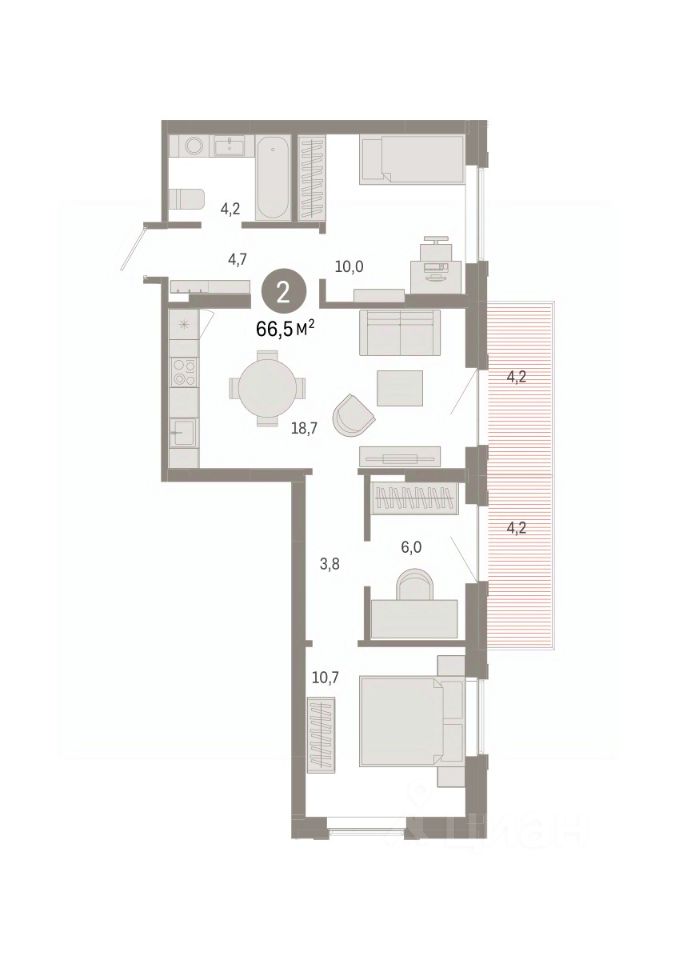 Трехкомнатная квартира от застройщика с предчистовой отделкой в Кварталы Драверта на 9 этаже. Общая площадь: 66.54 кв.м. Высота потолков 2.7 м.