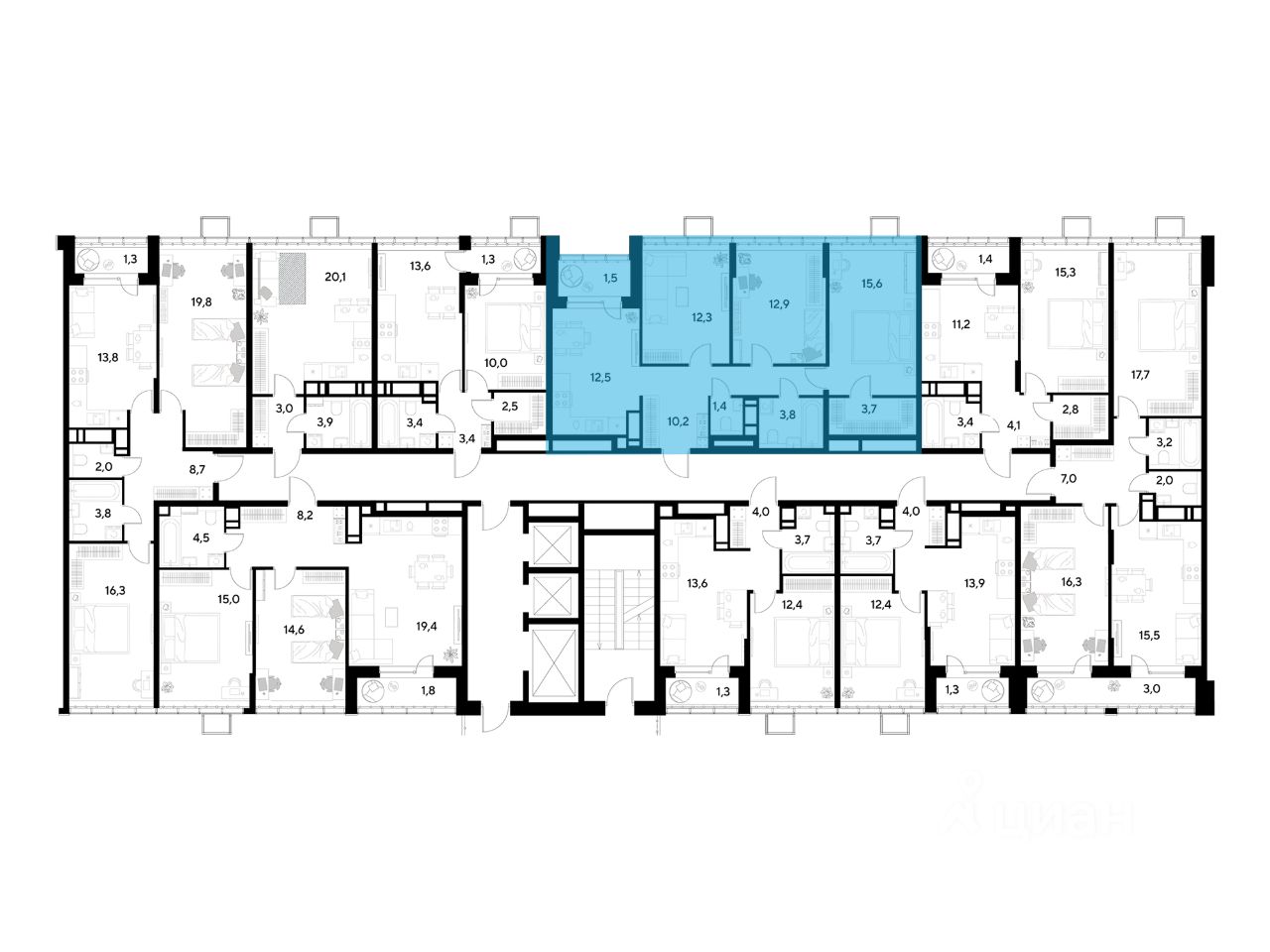 ЖК ''Снегири'', г. Омск, корпус 1 Срок сдачи: (4 кв. 2027, общей площадью 73.9 кв.м., на 20 этаже.)