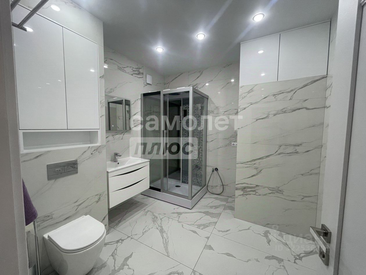 Просторный совмещённый санузел, а при входе в квартиру нас встречает удобная прихожая с гардеробной.