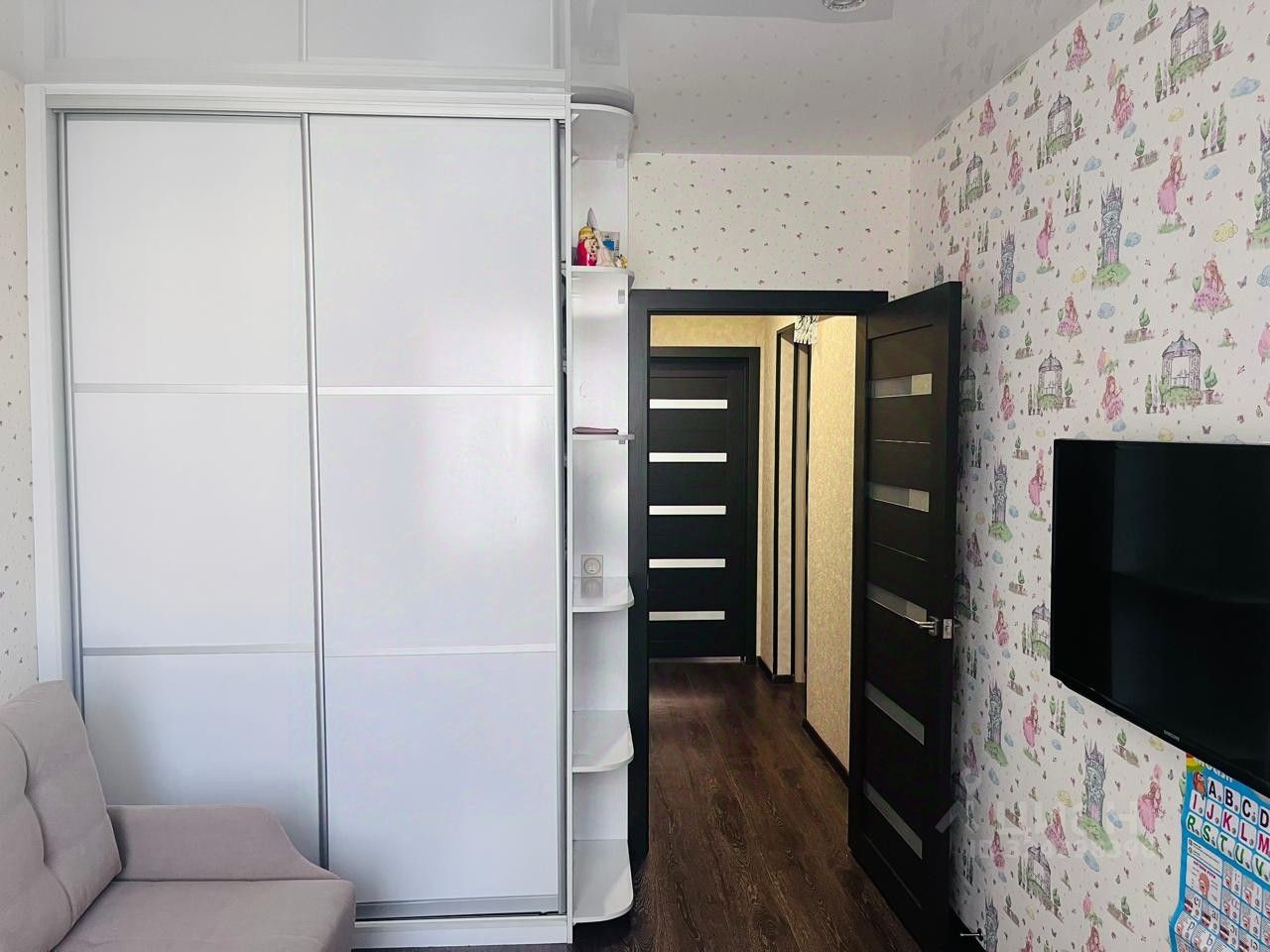 Остаётся вся встроенная мебель, кухонный гарнитур, встроенные шкафы - купе!