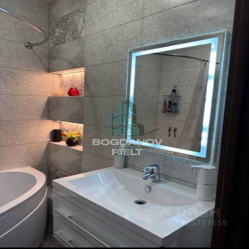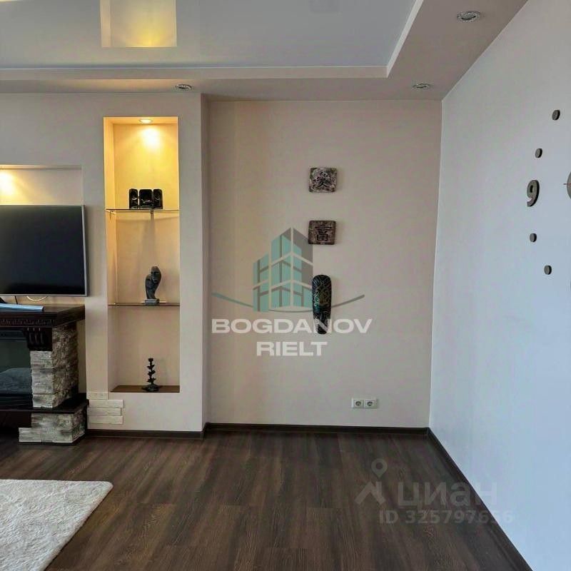 Ламинат в комнатах, плитка в ванной, подвесные потолки, пластиковые окна.