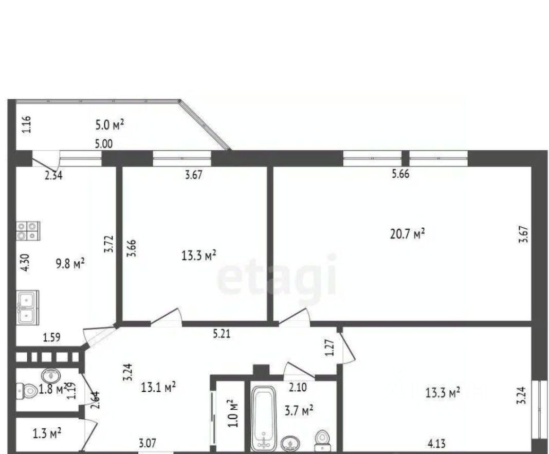 Большие, просторные комнаты, коридор и кухня позволят разместиться в квартире большой семье.