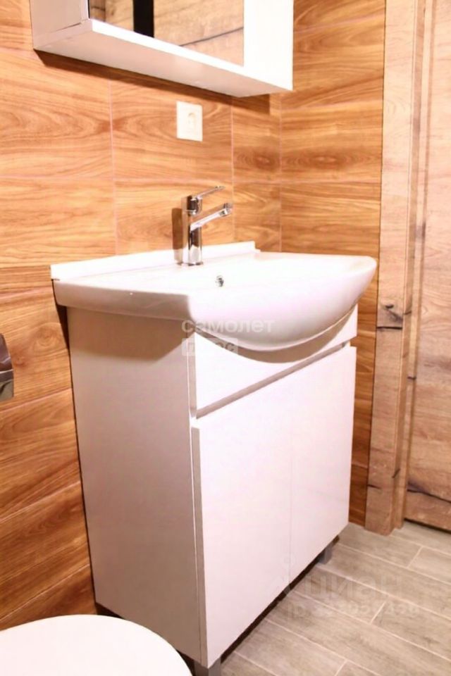 Санузел с отделкой под ключ, установлена сантехника и мебель.