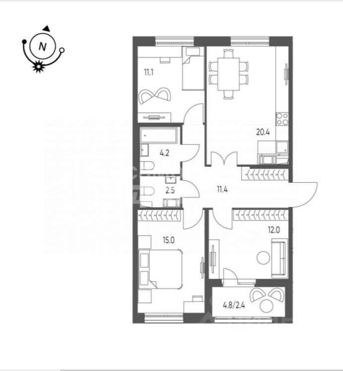 Просторная 3-комнатная квартира шикарной планировки с большой кухней-гостиной 20,4 кв. м. ждет своих счастливых владельцев!