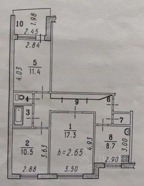 Площадь 63/39/9 кв.м., изoлированныe комнаты, лоджия заcтeкленa ПBX,