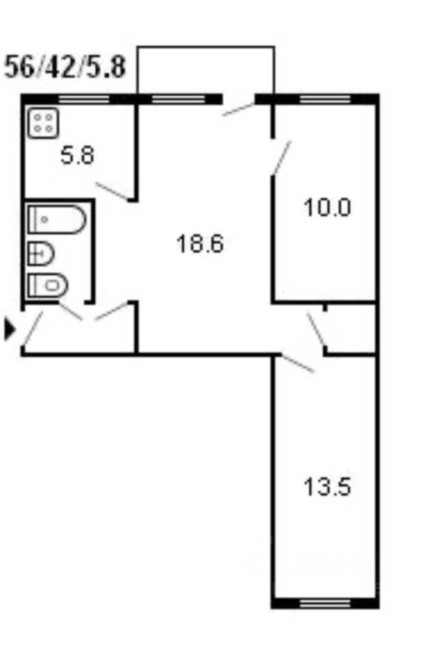 Площадь общая | 58.5 м² |