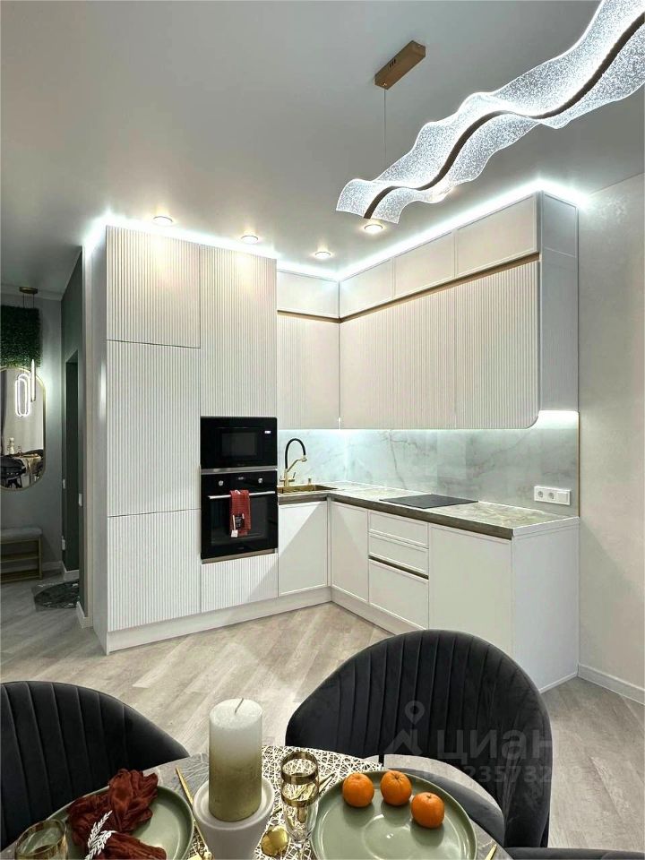 • Техника: большая посудомоечная машина (60 см), встроенный холодильник, вытяжка, духовой шкаф, встроенная микроволновая печь, варочная поверхность (индукция) всё готово для воплощения ваших кулинарных шедевров.