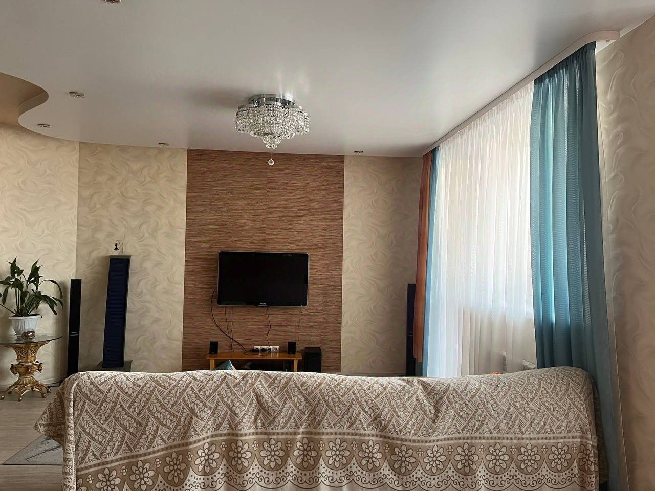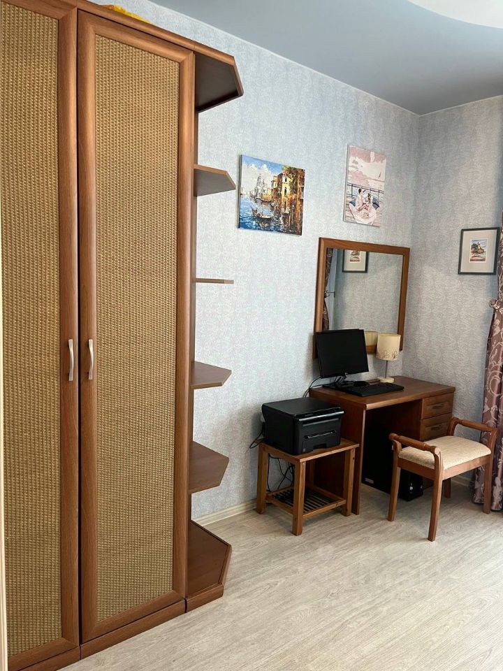 В квартире есть гардеробная комната, а также раздельный санузел, что добавляет удобства в повседневной жизни. По всей квартире натяжные двухуровневые потолки. На стенах обои, на полу уложен линолеум. Имеется водонагревательный бак на 30 литров предназначенный для резервного горячего водоснабжения.
