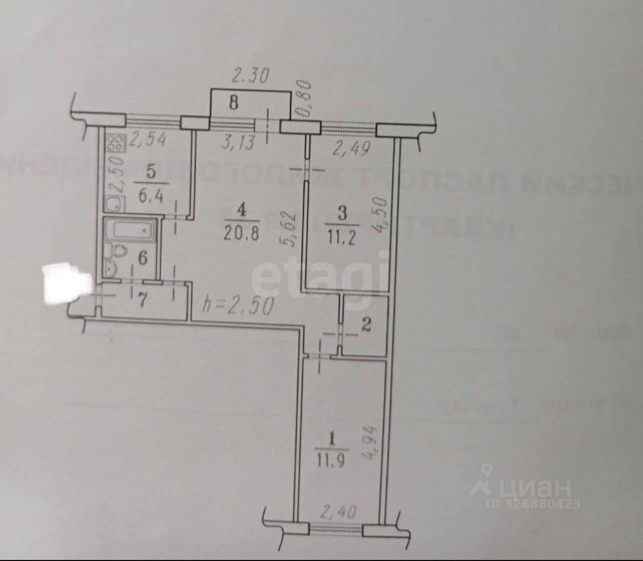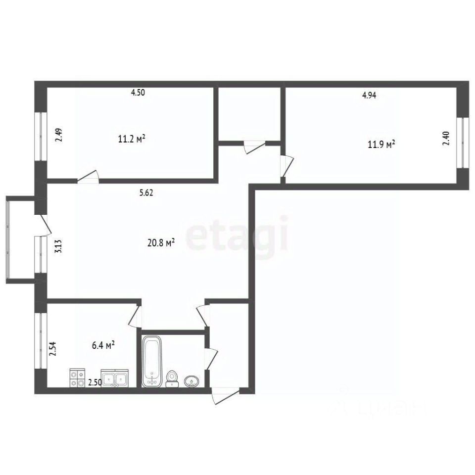 Площадь: 58.7 м².