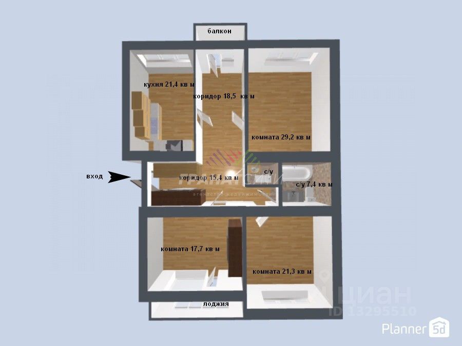 3 шикарные комнаты, каждая из которых больше 20 метров, включая кухню.