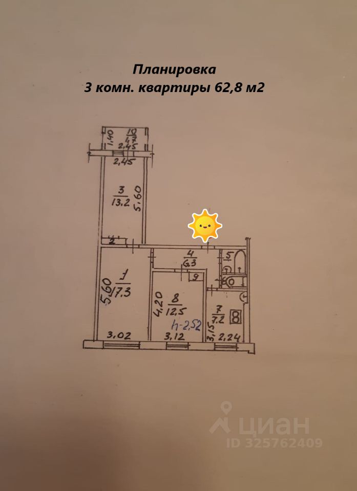 3 комн. KBAРТИPA 62,8 м2 по ул. ЛЕРМOНTОВА