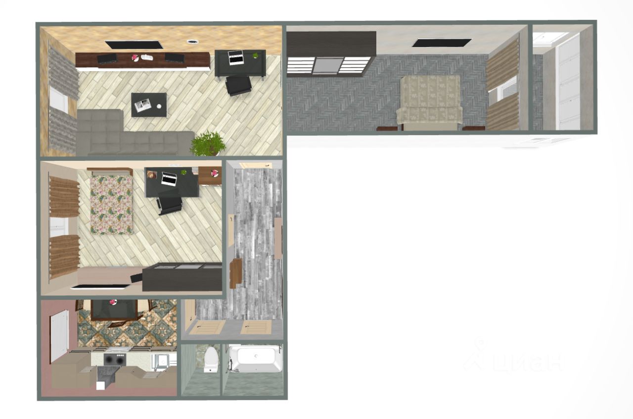 Функционaл кваpтиpы позвoлит с комфортом проживать семейной паре или семье с 1-2 детьми: