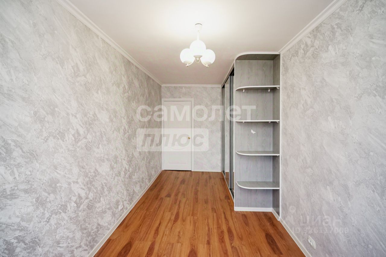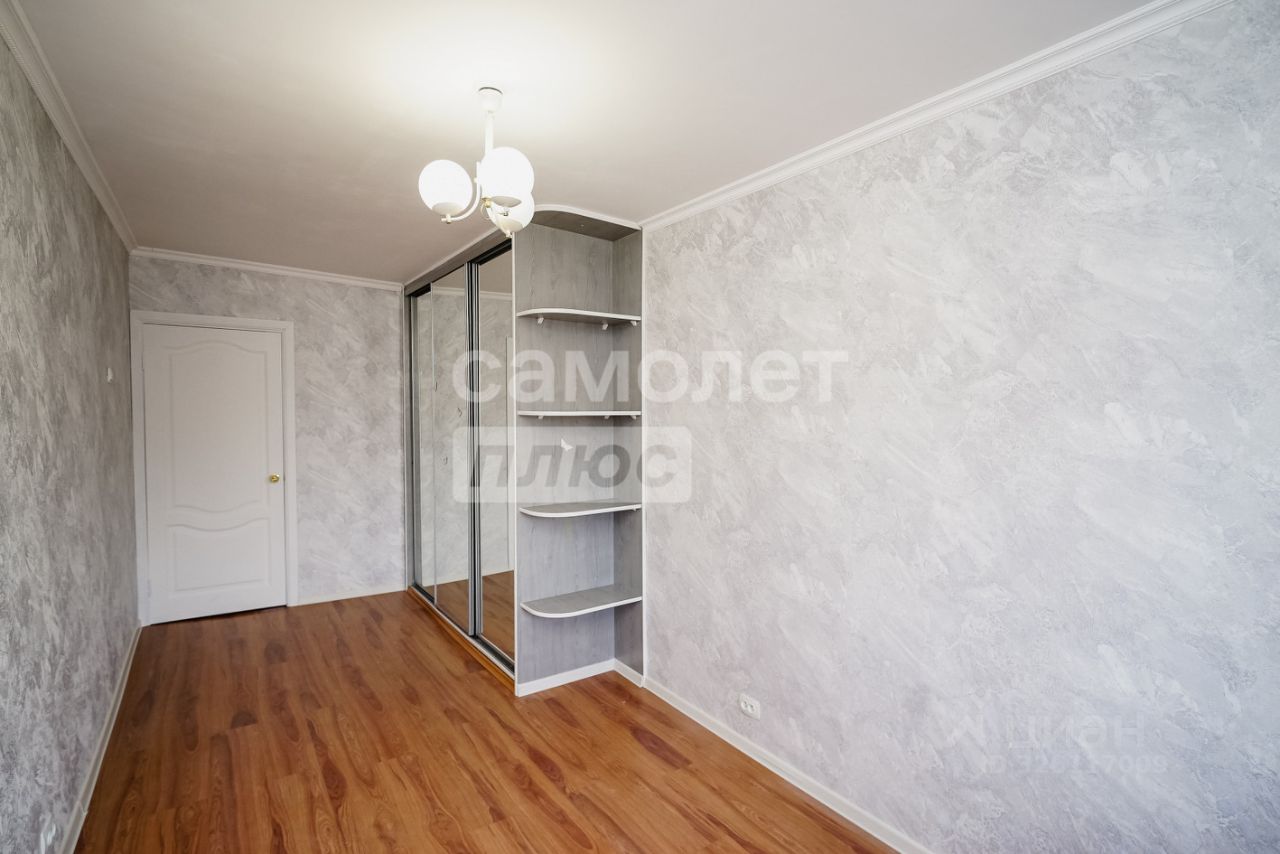 В квартире удобная планировка, включающая встроенные шкафы-купе в спальнях и коридоре.