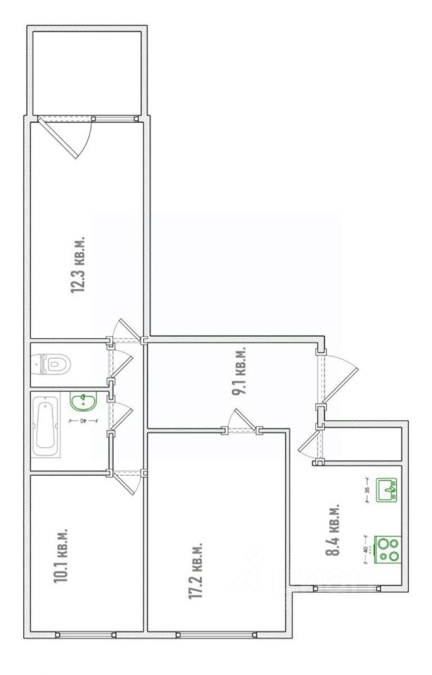 Санузел: раздельный, что очень удобно для семьи.