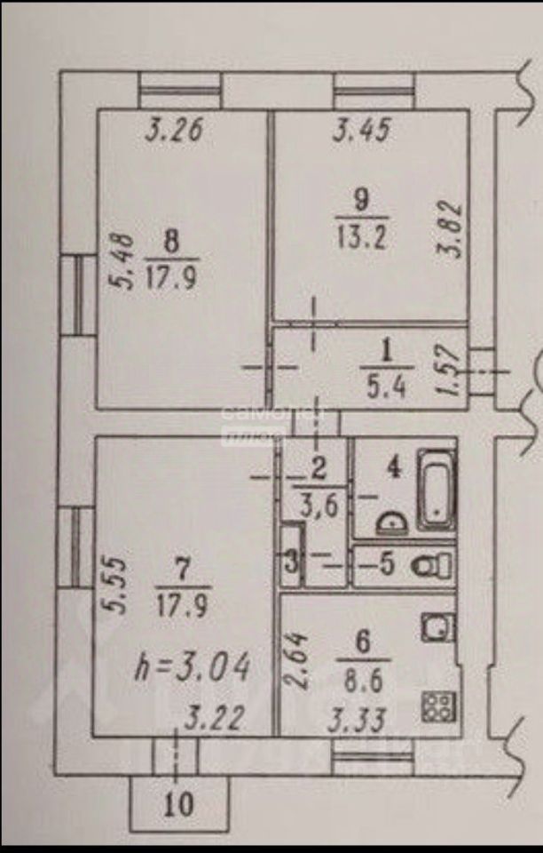 - Три большие комнаты 17.9 м2, 17.9 м2 и 13.2 м2