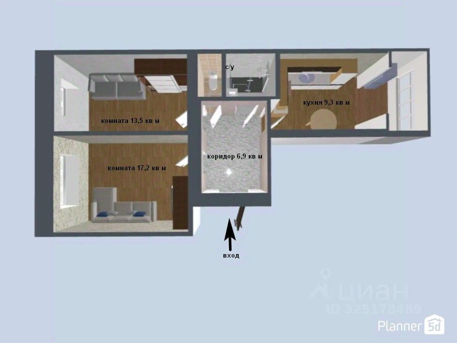 Кухня: 9.3 м Санузел: Раздельный.