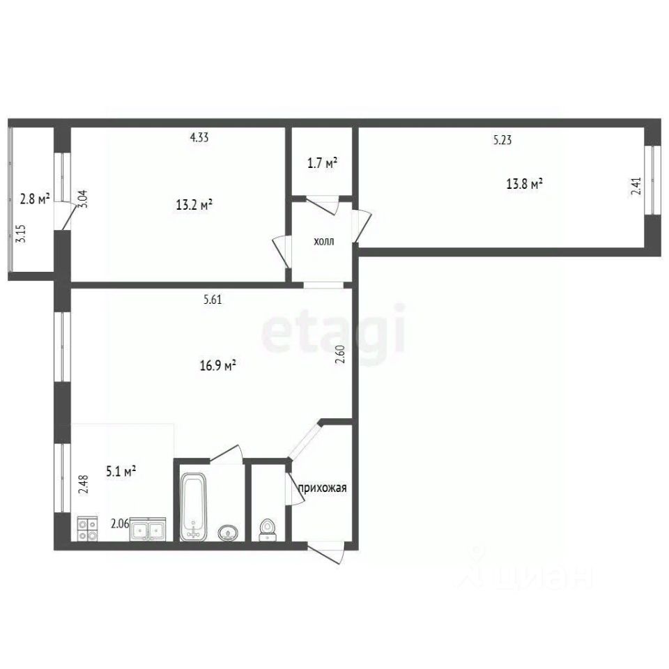 В квартире сделан современный ремонт. Кухня-гостиная 22 кв. метра и 2 изолированные комнаты. Перепланировка согласована и узаконена. Все комнаты светлые и просторные, окна выходят во двор, поэтому в квартире тихо и спокойно. Установлены качественные окна, а также есть остеклённый балкон. Санузел раздельный в отличном состоянии.