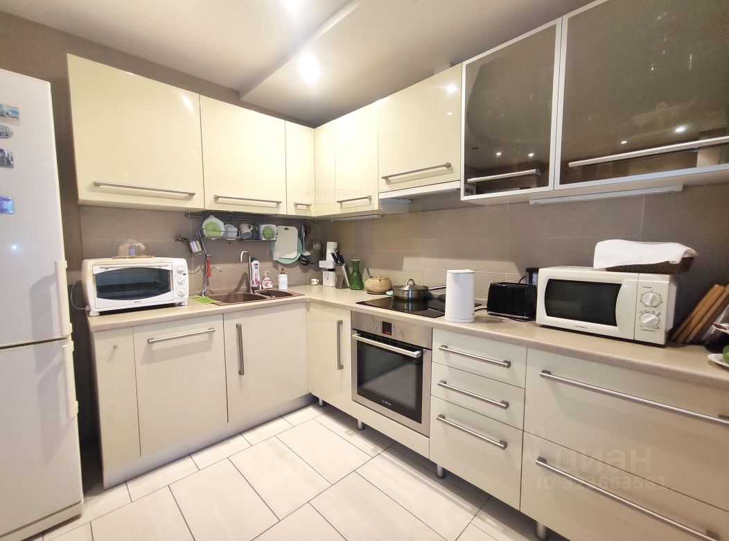 * В большой кухне площадью 13 м² остается Кухонный гарнитур со встроенной варочной панелью и духовым шкафом.