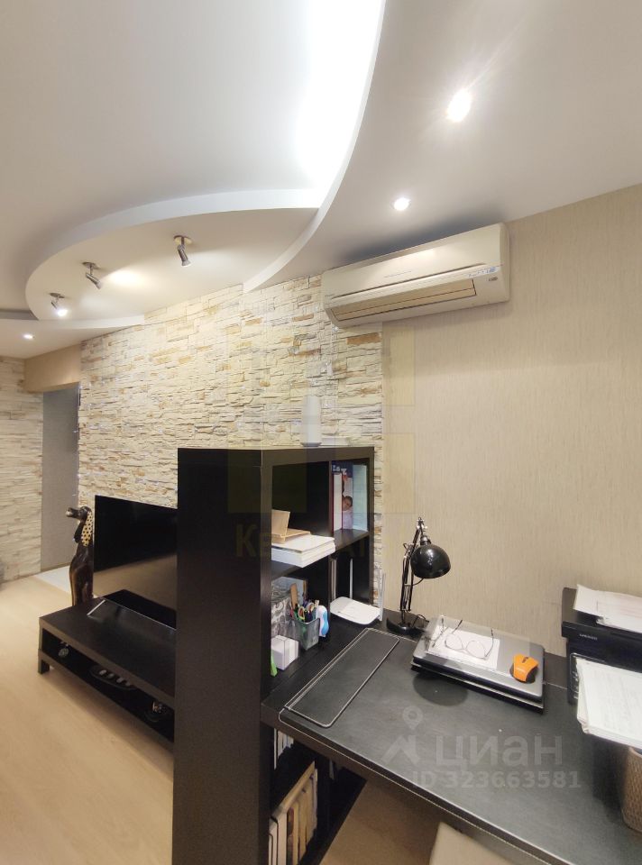 *В огромном зале площадью 25 м² остается стильный письменный стол с вертикальной полкой и кондиционер для идеального микроклимата.