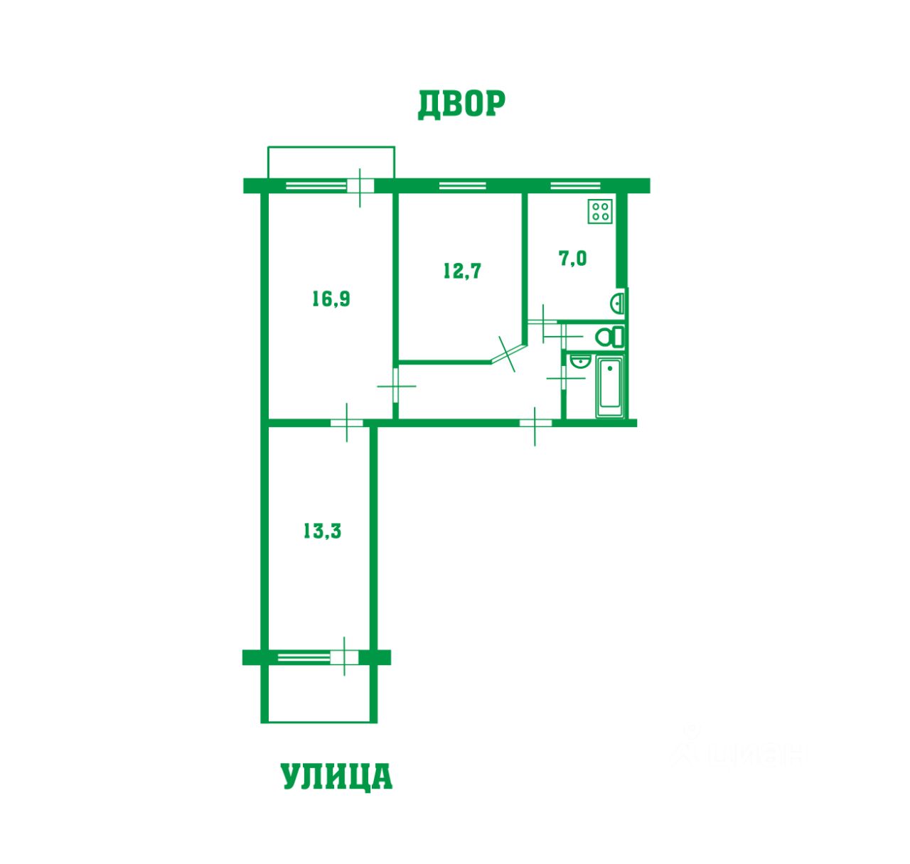 Квартира не угловая, две комнаты изолированные, вид из окна на обе стороны дома. Выход на балкон из зала, на лоджию из спальни. Санузел раздельный, облицован плиткой. Площадь квартиры составляет 59,8 кв.м