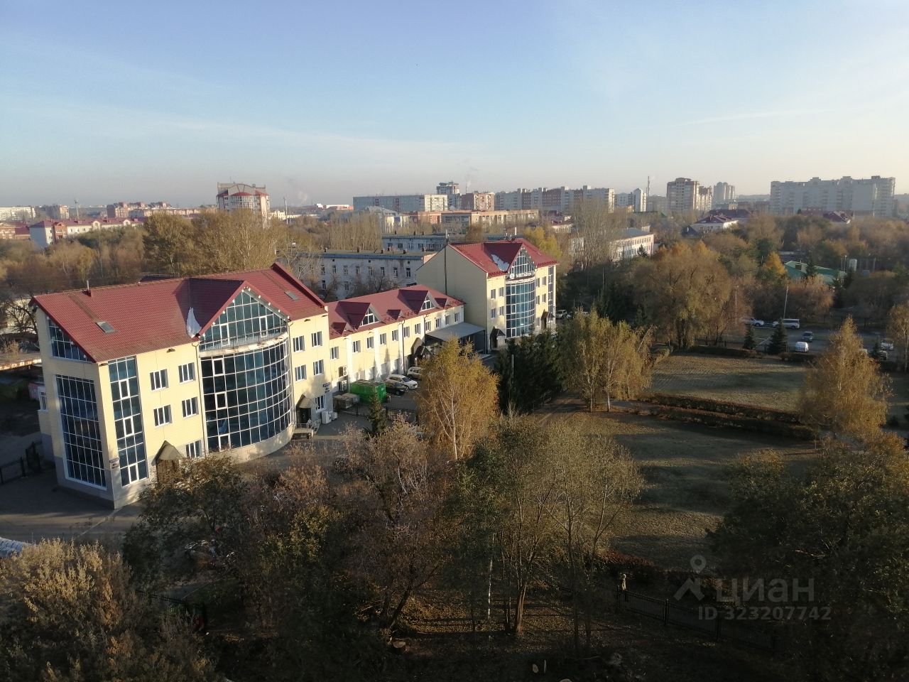С высоты 9-го этажа открывается красивый вид на большой зеленый сквер и красивую деревянную церковь возле дома!
