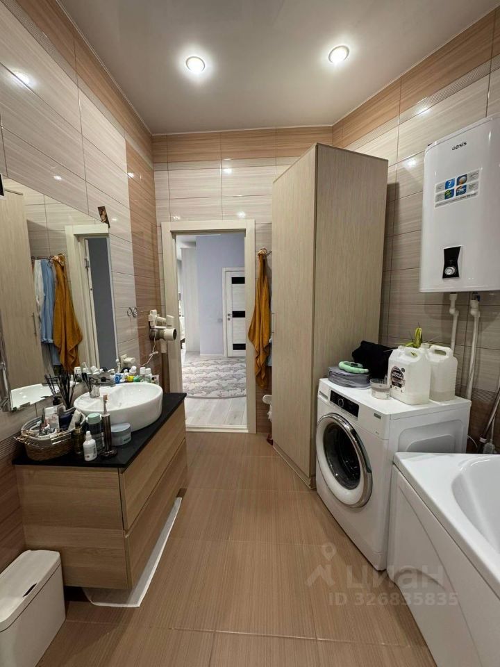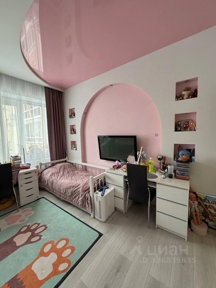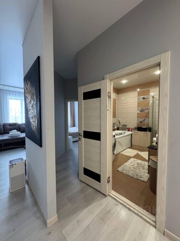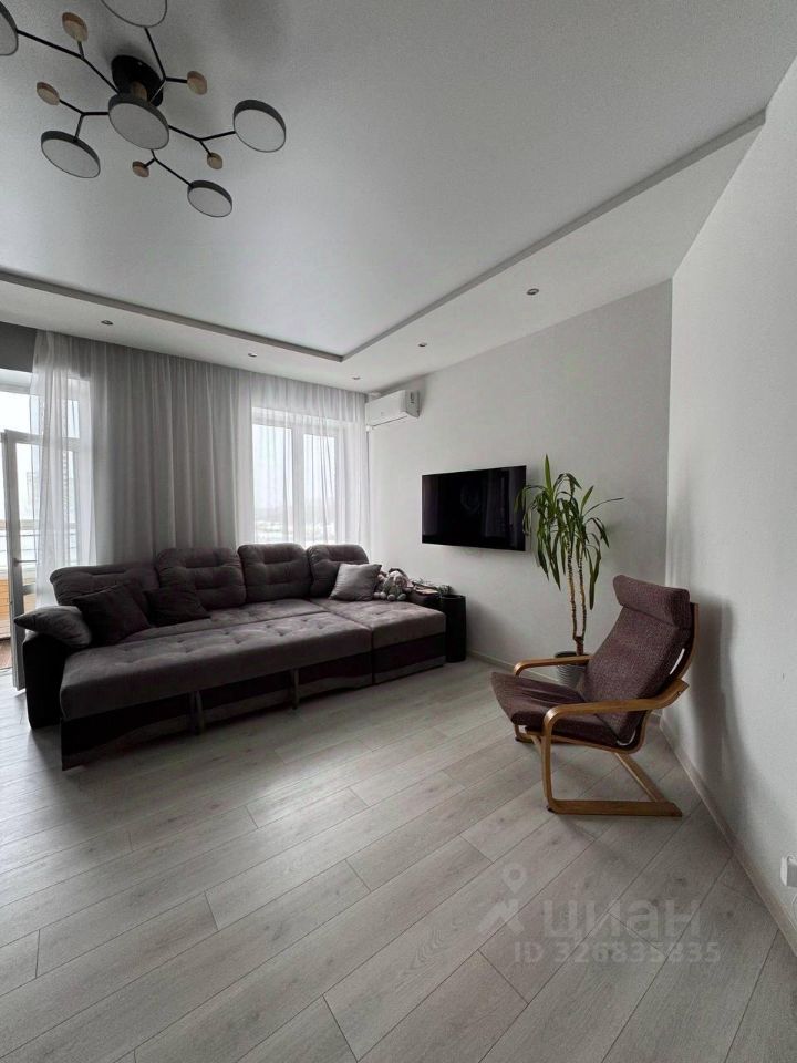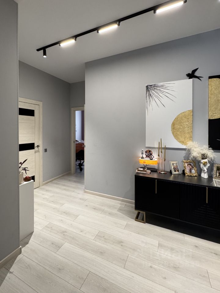В квартире остаётся встроенный кухонный гарнитур с бытовой техникой, шкафы-купе, диван в гостиной.