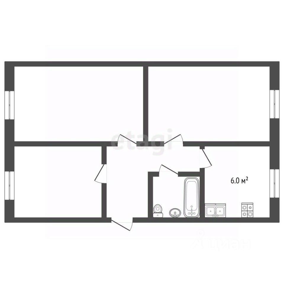 Просторная трехкомнатная квартира площадью 63,1 кв.м с изолированными комнатами предлагает отличную основу для создания современного жилого пространства.