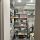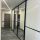 В коридоре установлена декоративная реечная перегородка из натурального дерева, а все шкафы выполнены в едином стиле, создавая ощущение гармонии и порядка. Вся корпусная мебель изготовлена на заказ, что гарантирует ее уникальность и высокое качество.