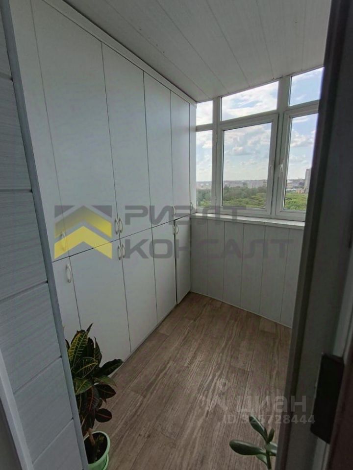 Кухня с выходом на большую застекленную лоджию со встроенным шкафом. Покупателю остается вся встроенная техника: посудомоечная машина, вытяжка, варочная панель, духовой шкаф.