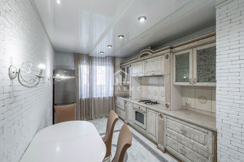 Кухня достаточно просторная (14 кв.м). Кухонный гарнитур со встроенной техникой, и обеденной зоной.