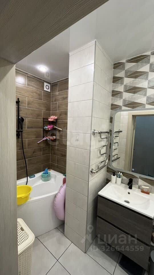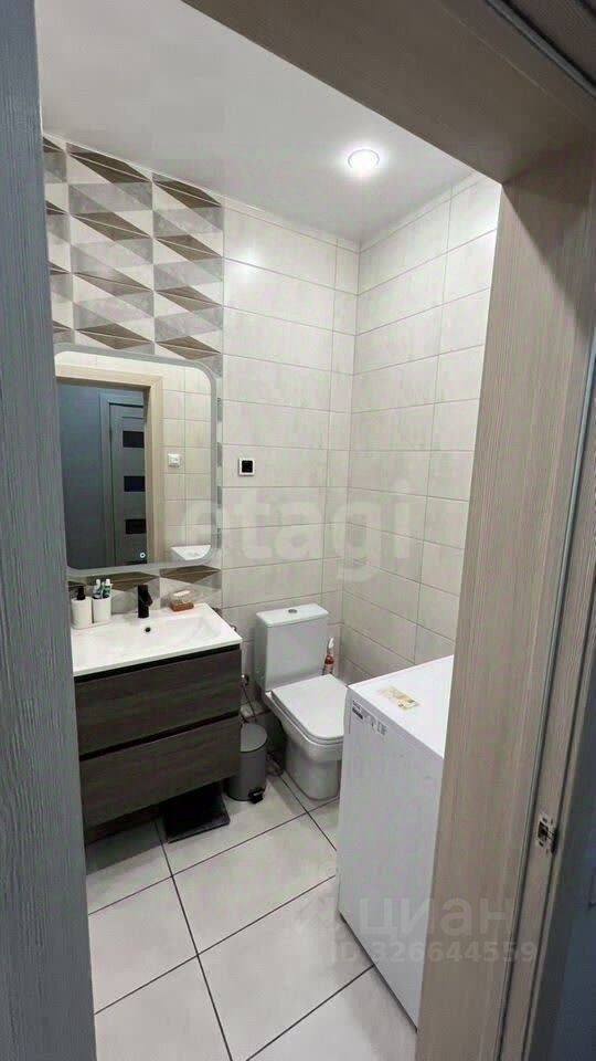 Во дворе закрытая территория с детской и спортивной площадками, есть открытая парковка за шлагбаумом. Санузел совмещенный, выполнен в современном стиле.