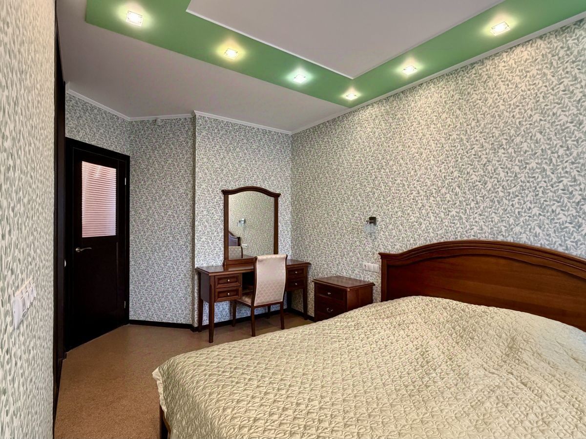 Просторная гостиная-кухня идеально подходит для семейных ужинов и приготовления вкусных блюд. Имеются 2 лоджии, с одной из которых открывается прекрасный вид на Школьный бульвар. В квартире 2 санузла, где установлены душевая кабина, ванна джакузи, водонагреватель, а также системы инсталляции. В прихожей встроен вместительный шкаф-купе.