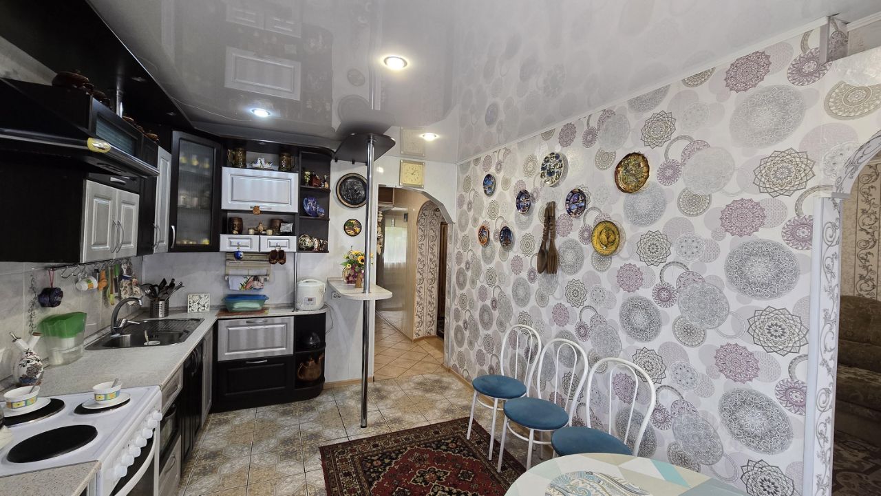 Квартира необычной планировки, уютная,просторная, теплая, светлая, комнаты большие, окна ПВХ. На кухне, в прихожей, в ванной и санузле на полу керамическая плитка, в гостинной ламинат, в спальнях ковровое покрытие. Квартира в отличном состоянии, не требующая ремонта. Планировка хорошая, необычная. в гостинной, на кухне и в ванной комнате глянцевые натяжные потолки. В прихожей встроенный шкаф-купе с зеркалами. Во дворе спортивная площадка и новая игровая детская. В минуте ходьбы МСЧ-9, аптека Фармокопейка и Апрель. Средняя Школа 2, Детский садик находятся в шаговой доступности. Социальный рынок, на рынке пункт выдачи OZON, магазины ''Магнит'', ''Ярче''. Во дворе расположены пункт выдачи заказов Wildberries, магазин ''Красное Белое''. Для отдыха имеется Березово хвойный парк ''Восточная Роща'' с тротуарами, скамеечками для отдыха, детскими и спортивными зонами отдыха. В шаговой, так же, доступности находится конечная остановка МСЧ-9, отличное транспортное сообщение с городом. Имеются 2 парковочных места под автомобиль под окнами квартиры. Покупателю приятный бонус, остаётся мебель: В прихожей встроенный зеркальный шкаф купе, кухонный гарнитур, в гостиной огромный угловой диван и кресло кровать, в спальнях так же остаётся мебель, спальный гарнитур, диван, 2 камода, 3 платяных шкафа , этажерка, телевизор LG, в ванной комнате навесные шкафы, одинс зеркалом , и напольная тумба с раковиной, стиральная машинка автомат Samsung.
