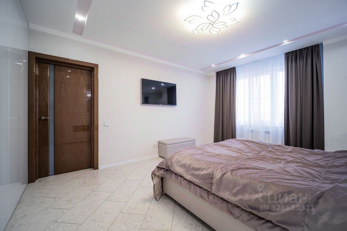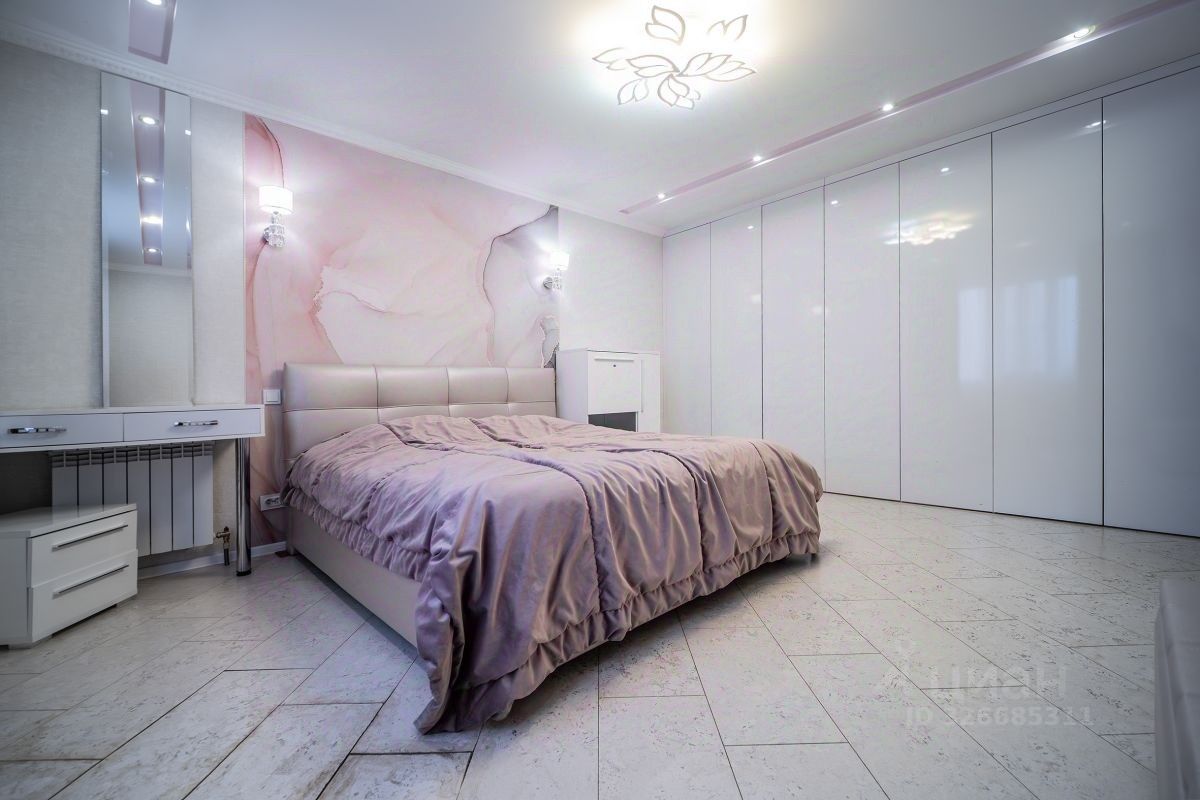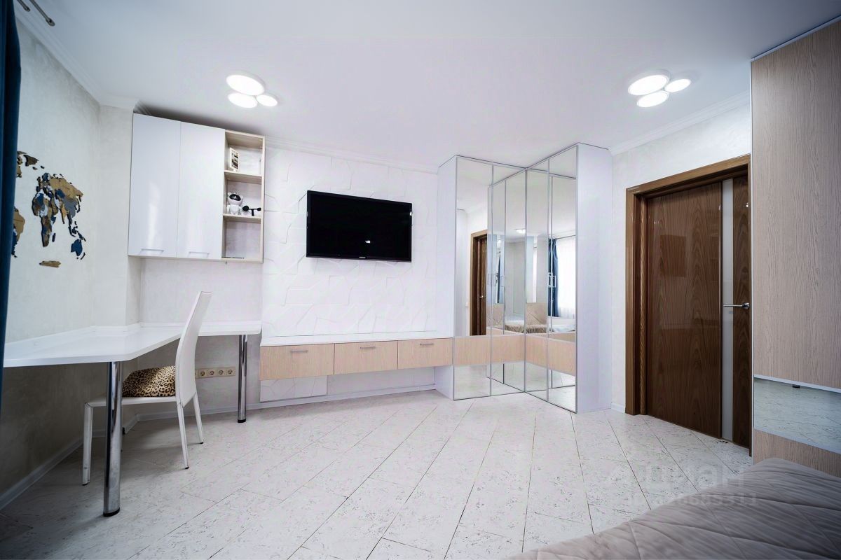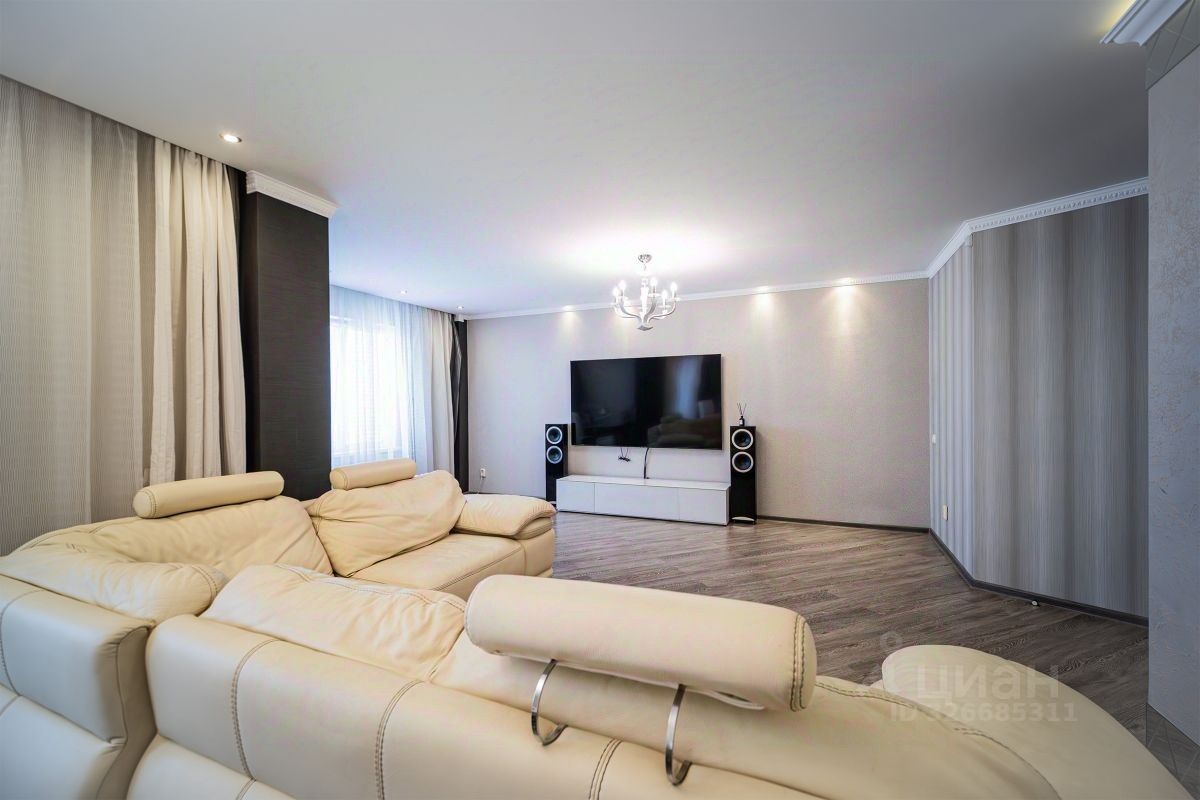 Просторная кухня, большой зал-гостиная, три изолированные комнаты, две вместительные гардеробные, два раздельных сан узла в одном из которых находится сауна, два балкона с прекрасными видовыми характеристиками.